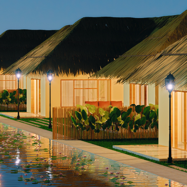 Inspired by the gentle beauty of the water lily, Aambal is a serene retreat where nature and design flow in harmony. Swans glide across tranquil ponds, ostriches wander gracefully through the landscape, and the hum of windmills blends softly with the breeze, creating an atmosphere of peace and wonder. Set amidst lush greenery, the resort fuses Balinese elegance with tropical charm, offering both traditional warmth and modern comfort.
